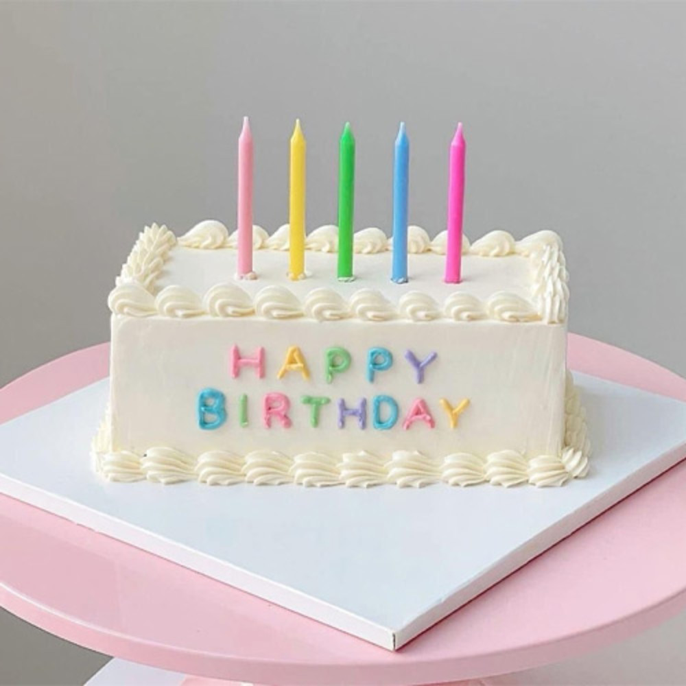 کیک رنگین کمانی مستطیل کاملا قابل شخصیسازی است؛ میتوانید طعم دلخواه فیلینگ را از بین گزینههای شکلاتی، وانیلی، توتفرنگی و سایر طعمها انتخاب کنید و همچنین رنگها و جزئیات تزئینات را به دلخواه خود تغییر دهید تا کیک دقیقا مطابق با سلیقه شما باشد.