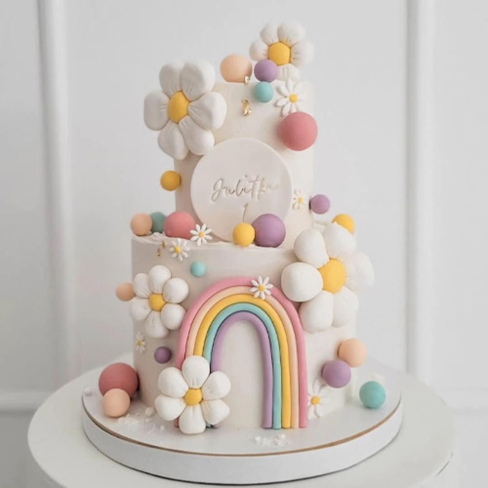 کیک تولد رنگین کمان دوطبقه یک انتخاب جذاب برای جشنهای تولد است. این کیک دوطبقه به ویژه برای جشنهای کودکانه و تولدهای خاص مناسب است و توجه همه را جلب میکند.